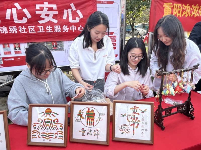 随后,党员志愿者们与社区居民一起动手体验非遗文化,共同制作竹编和香囊。这些蕴含丰富文化和独特美学的传统手工艺品,不仅展现了党员志愿者们对社区老年居民的深情关怀与诚挚祝福,也在潜移默化中将中华民族尊老、敬老、爱老的传统美德代代相传。
