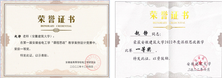 以党支部书记“双带头人”工作室培育建设为抓手,坚持“立德树人”根本任务,加强师德师风建设。鼓励教师参与教育教学竞赛,积极申报一流课程、精品课程、虚拟仿真实验项目;组织开展课程思政建设研究,鼓励教师编写特色教材,提高教材的实用性和针对性。近三年,支部党员赵静荣获第一届安徽省电工学“课程思政”教学案例设计竞赛一等奖、学校课程思政教学比赛一等奖、第四届全国教师教学创新大赛安徽省二等奖;支部成员获省级质量工程项目3项、校级质量工程项目6项、校级规划教材2部,支持协助学院承办安徽省第九届电力电子与新能源教学研讨会,支部教师参与各种学术会议20余次,增强了电气工程专业在省内外的影响力和美誉度。教师党员通过教学竞赛、课程建设、思政研究、教材建设、学术交流等提升了专业技能,提高了教书育人水平,为电气工程、自动化等专业建设与人才培养提供了坚强保障。