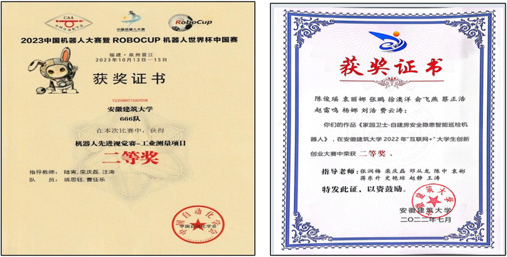 党支部积极发挥学科专业、人才科技优势,依托学院控制科学工程硕士点,鼓励支部教师积极申报各类科研项目,近年来支部教师获安徽省重点研发项目、安徽省自然科学基金项目、安徽省教育厅科研项目、校企合作横向课题等20余项,课题到账经费180余万元,发表SCI 、EI等高水平论文30余篇,培养硕士研究生40余名,教师党员科研水平得到显著提升。教师将科研成果融入专业课程教学、融入学生学科竞赛、科技创新项目中,充分激发了学生参与学科竞赛、创新创业的积极性和创造性。近三年支部教师依托学院“自动化创新实验室”、“智能机器人”实验室,组织学生参加中国国际“互联网+”大学生创新创业大赛”、“西门子杯”中国智能制造挑战赛、安徽省机器人大赛、中国机器人大赛、安徽省大学生创新大赛、安徽省高校电力电子应用设计竞赛等AB类赛事,获国家级一等奖2项、二等奖2项,安徽省一等奖6项、二等奖20项的优异成绩,获得国家级、省级及校级大学生科技创新项目30余项。通过科技创新项目、学科竞赛的实施,激发了学生创新创业的热情,培养了学生团队协作意识,“工程教育”人才培养模式取得良好成效。教师党员积极指导、组织、带队参赛,形成了大三学生指导帮助、大二学生具体实施、大一学生学习配合的“321”的竞赛模式,在学院其他学科竞赛中得到推广应用。