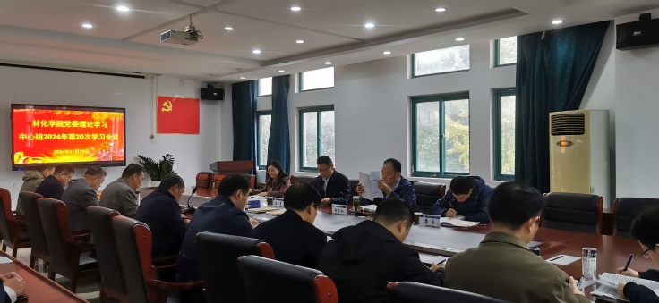 本网讯 11月19日,材化学院党委召开2024年党委理论学习中心组第二十次学习(扩大)会议,校党委书记、列席旁听工作组第一组组长马文革,学工部(学生处)部长(处长)徐庆和和土木学院党委书记王媛等参加会议。会议由材化学院党委书记万德军主持,学院党委班子成员、党支部书记参加会议,教师代表徐文总、金震、李刚列席会议。