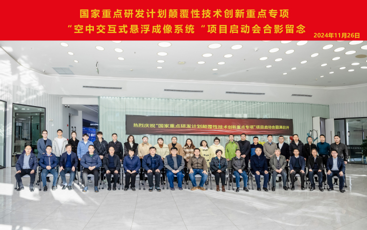 本网讯 11月26日,由东超全息(北京)科技有限公司牵头承担的国家重点研发计划颠覆性技术创新重点专项“空中交互式悬浮成像系统”项目(编号:2024YFF1500100)启动暨实施方案论证会在合肥顺利召开。校党委副书记、校长黄显怀教授率队参加会议,我校承担项目课题二“高精度空间交互传感系统研发”(编号:2024YFF1500102)。