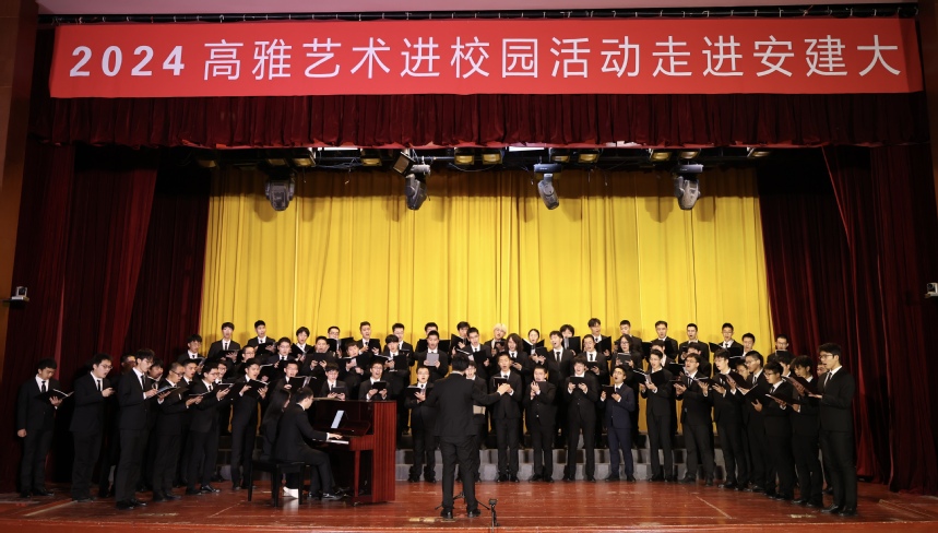 本网讯 近日,“2024年高雅艺术进校园——中国科学技术大学学生合唱团走进安建大”活动在我校大学生活动中心举行。本场音乐会以中国当代合唱作品为主题,用音乐语言传递了中华民族在新时代昂扬奋进的精神风貌,为全校师生们献上一场艺术与思想交相辉映、情感与智慧共鸣的视听盛宴。