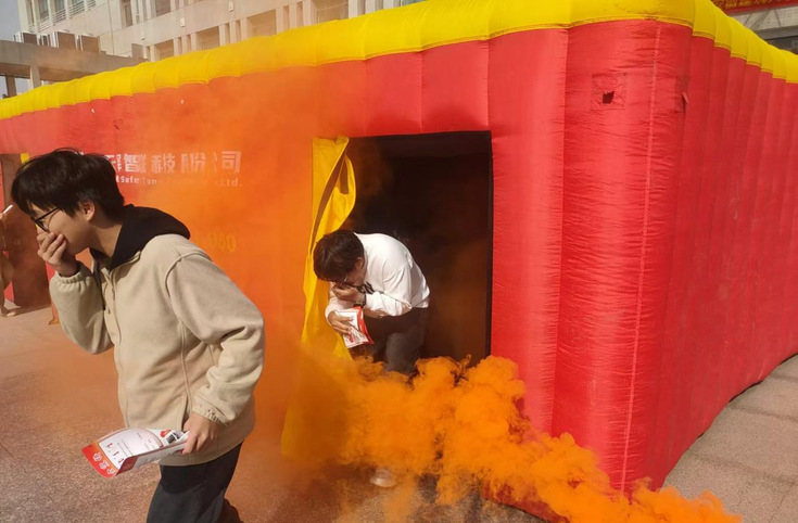 11月8日,学校保卫处在徽学楼日月广场组织首次消防宣传活动,主要通过设立火灾逃生模拟体验屋进行实战演练,活动中为师生们详细讲解火灾发生时的应急疏散路线和基本逃生技巧,教学如何在紧急情况下保持冷静并采取正确的疏散方法。