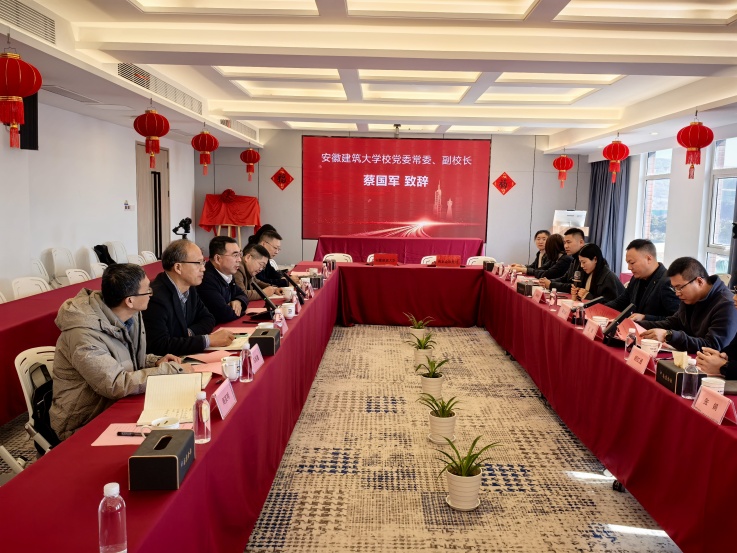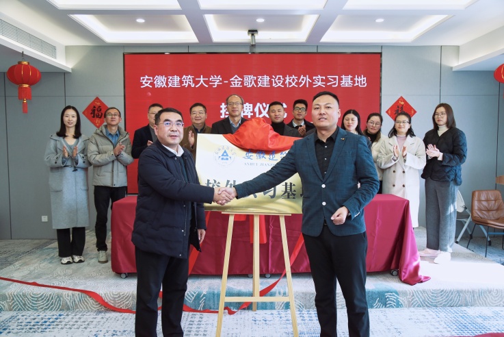 蔡国军全面介绍了学校的基本情况,作为安徽省唯一一所以土建类学科为特色的多科性大学,学校多个专业与金歌建设、华设设计的需求精准契合,毕业生凭借扎实的专业素养与工匠精神,在省内建设领域颇具影响力。此次合作将横跨工程技术、教学教改、研究生培养、科研成果转化及支部共建等多元领域,携手推动校企事业迈向新高度。与会人员围绕企业发展战略、人才需求动态、校企合作模式、科研成果落地转化等展开深度研讨,挖掘更多合作契合点与可能性,争取充分发挥各自优势,整合资源,让理论与实践深度融合,为企业输送优质人才,助力高校科研成果从“实验室”走向“生产线”。座谈会结束后,学校与金歌建设举行了签约授牌仪式。就业处负责人代表学校与陈大金签订优质就业基地建设协议书,蔡国军与陈大金共同为“ku游官方校外实习基地”揭牌。