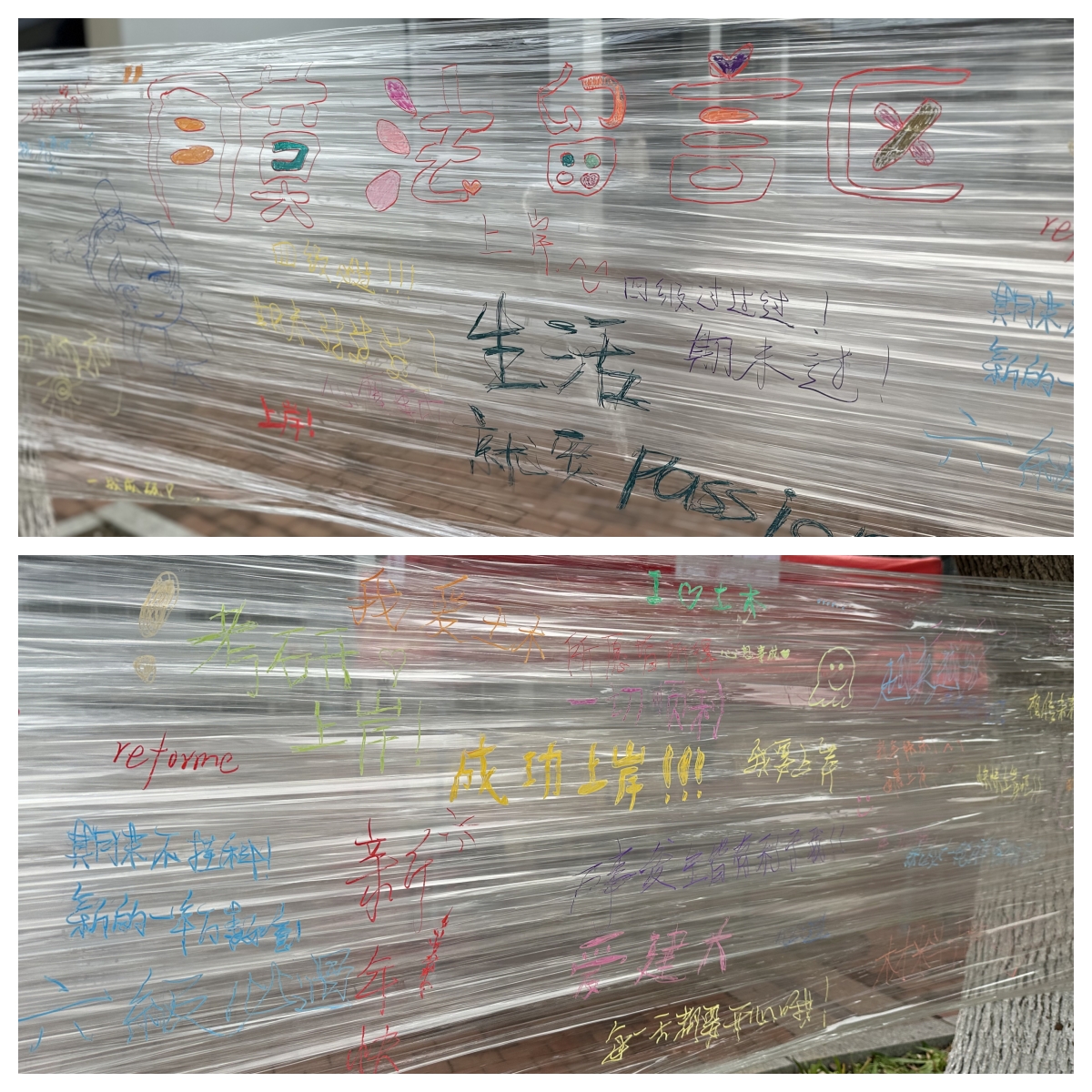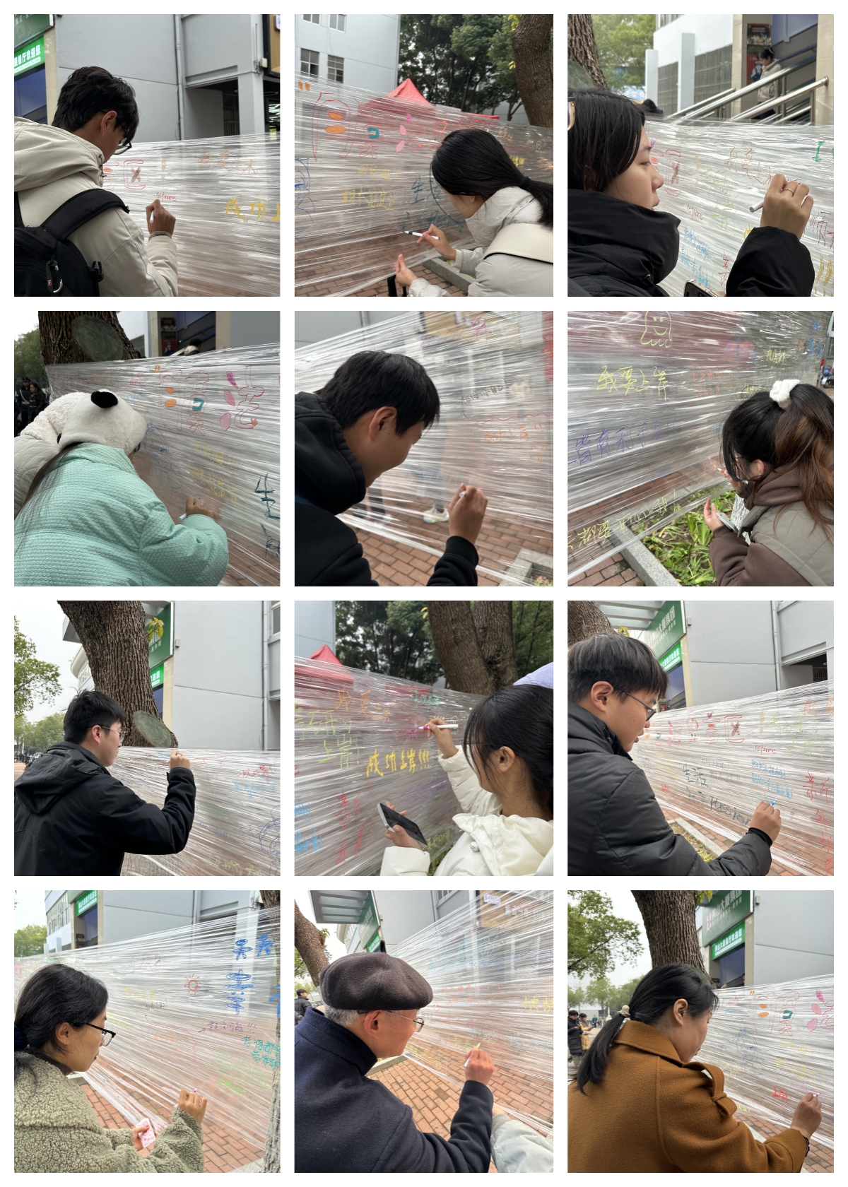 活动现场气氛热烈,学院领导来到活动现场,指导并参与打卡拍照活动。本次活动还提前发起了校园寻“花”预热活动,其中含有十张隐藏彩蛋,可在活动现场额外领取精美礼物。在“膜”法涂鸦留言区环节中,同学们可以在“膜”法留言区涂鸦或分享最近的开心事、烦心事,也可以表达对他人的友好祝福与鼓励,写下治愈、温暖的话语。通过涂鸦,也为同学们提供一个展示内心自我,分享阳光心灵的平台,同学们将自己内心中最真实的自己以手绘的方式表达出来,更好地探索自我、表达自我。承载着满满正能量的留言区,在无声中传递了温暖与力量,实现了人与人之间深刻的情感交流与共鸣。完成活动后,可以领取学院专门定制的盲盒花种卡纸,精心培育可开出美丽的鲜花。