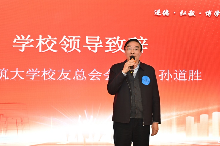 孙道胜致辞,他向苏州校友会成功换届表示祝贺。他指出,苏州校友会自2018年成立以来,搭建“团聚联谊、交流互通”平台,开展校友联谊活动,加强信息共享,实现合作共赢,回馈支持母校发展,为兄弟校友会做好示范和借鉴,校友工作取得丰硕成果。对第一届苏州校友会全体成员的辛苦付出和积极参与表示衷心的感谢。希望新一届理事会坚持以服务校友、服务母校为宗旨,带领全体苏州校友不断加强组织建设,强化服务意识,创新联络机制,丰富活动形式,落实互惠体系,努力建设好苏州校友会,为母校教育事业发展贡献力量!
