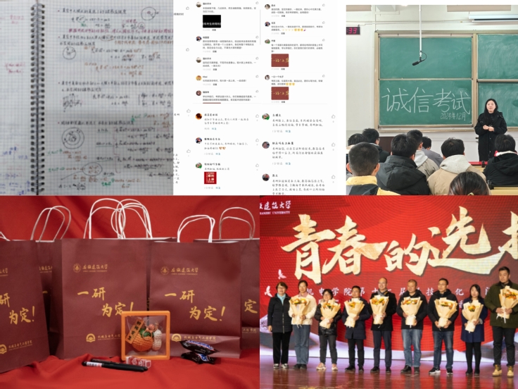温情送考研途人。学院易班组织“考研逐梦踏新途”线上祝福征集活动,精心准备一“研”为定福袋,用谐音寓意美好,祝愿机电学子“用”往直前、“具”佳表现、好“柿”发生,“果”然成真。考场外,毕业班辅导员的叮嘱加油,同学间的相互鼓励,汇聚成一股强大的精神动力,鼓舞着考研学子们无畏前行。