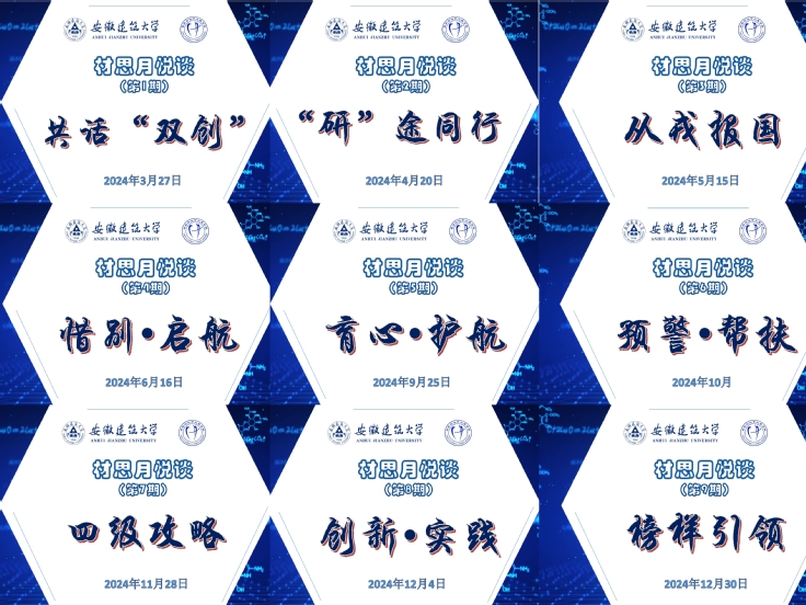 学院以立德树人为根本,以国庆、校庆、开学、毕业等时间节点,扎实推进理想信念教育、“五史”教育、爱国主义教育、爱校荣校教育等,引领学生们培育和践行社会主义核心价值观,切实提高育人实效,为党育人、为国育才。结合主题班会、主题党日活动、主题团日活动、校园网、微信公众平台、易班校园号等渠道,凝集多方力量,扎实推进年度主题教育活动的开展,创新活动内容和载体,以“温暖有光 筑牢安全防线 凝心聚力 共育时代新人”为主题开展活动50余项。凝练品牌,倾力打造“材思月悦谈”,自3月起至今,已办9期,围绕学生们关注的热门话题开展,在师生之间、朋辈之间搭建有料、有趣、有用的交流互鉴平台,让学生们在思想碰撞中激发新思维,收获精神生命成长所带来的欢悦。