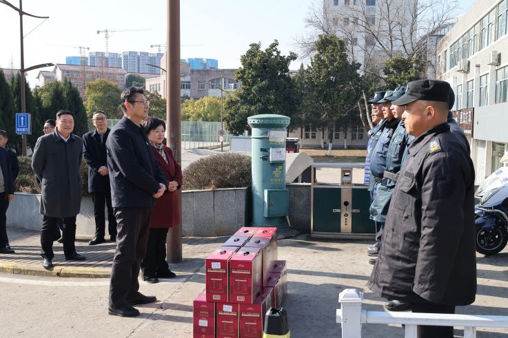 本网讯 蛇舞春光里,人欢福景中。在新春佳节之际,2月6日,农历正月初九上午,校党委书记马文革,校党委常委、副校长李早带领相关部门负责同志,携新春祝福,深入两个校区,走访慰问一线干部职工,把组织的关怀与温暖送到群众的心坎上,并对假期校园安全稳定工作进行督促指导。