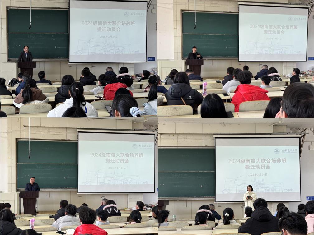 学校高度重视,2月24日下午,专门召开了2024级联培学生搬迁动员会,校长三角区域高等教育一体化示范区共建办公室、学生处、教务处、后勤处等部门负责人,各学院分管学生工作书记,2024级联培班辅导员、2024级联培班学生参加会议。会上,学校长三角区域高等教育一体化示范区共建办公室、教务处、学生处负责人就联培班培养方式、学习生活、2023级联培学生现状作了简要介绍,勉励同学们把握机会、珍惜资源、取得成绩,并就2月26日搬迁工作作具体部署。