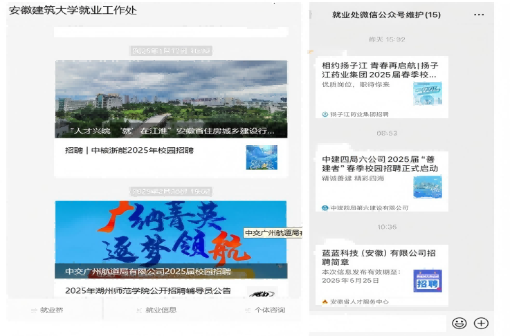 早筹春招,聚企引岗。应对严峻复杂的就业形势,学校寒假期间积极筹备、趁早谋划2025年春招就业市场工作。先后与合肥各区县人才主管部门、省内外人才服务机构沟通联系,并积极争取省住建厅、教育厅等政府部门支持,目前已落实春季大中型招聘会6场,预计参与企业500余家。