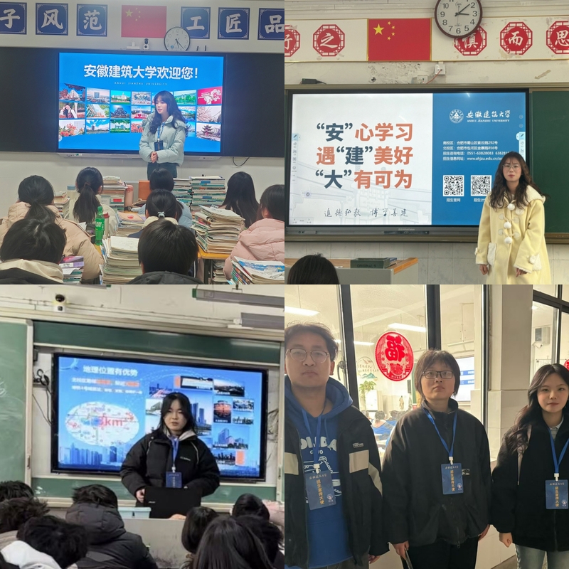 学院积极倡导学生寒假期间回访母校、展现建大风采,为我校招生宣传工作贡献自己的一份力量。活动由学院“榜样的力量”受表彰学生、研究生和本科生党团支部成员、学生会、社团和班级学生骨干等,作为学校“代言人”重返高中母校开展宣传。