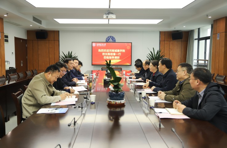 本网讯 近日,河南城建学院校长陈桂香、副校长孙玉周一行7人来校调研交流。学校在紫云路校区徽风楼21楼第五会议室召开座谈会,校党委副书记、校长黄显怀主持会议,办公室、教务处、教师发展中心、国资处、后勤管理处、信息网络中心等单位主要负责人参加会议。