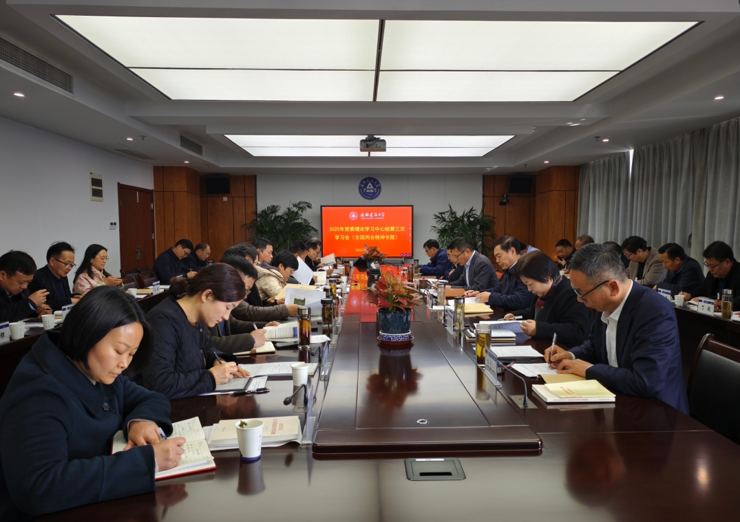 本网讯 3月18日,学校在紫云路校区徽风楼21楼第二会议室召开2025年党委理论学习中心组第三次学习会,专题学习传达全国两会精神并开展研讨交流,学习《习近平总书记关于党的建设的重要思想概论》《习近平文化思想学习纲要》部分内容等。校党委书记马文革主持学习会,校党委理论学习中心组成员参加,随机抽点的三名党员干部列席会议。
