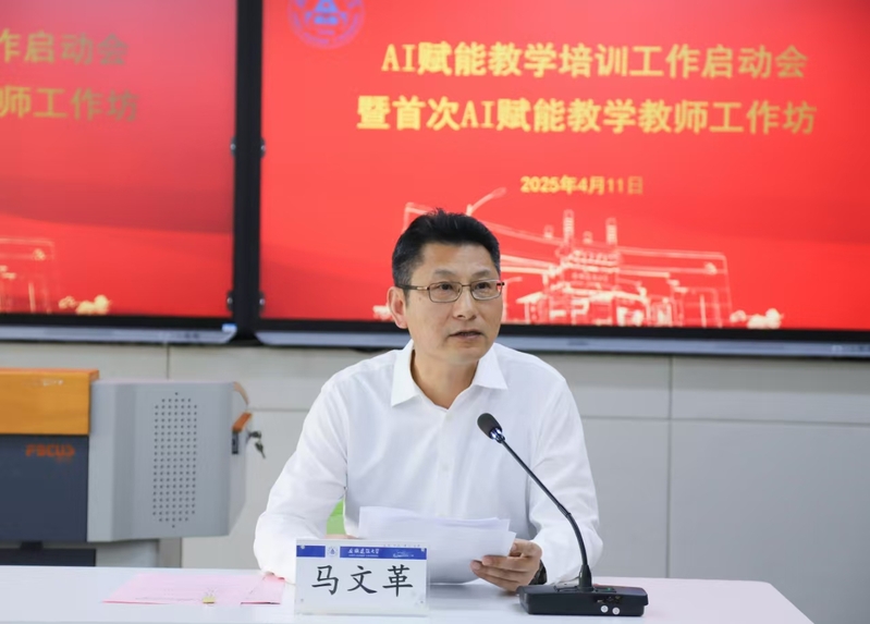 在AI赋能教学培训工作启动会上,校党委书记马文革作动员讲话。他指出,面对人工智能技术对教育领域的深刻变革,广大教师要主动拥抱新机遇、迎接新挑战,以AI技术赋能教学创新,以优良教风引领学风建设。他从“提高思想认识,深刻把握 AI 赋能教学的重要意义”“把握时代机遇,将AI技术深度融入教育教学改革”“聚焦教风提升,切实提升广大教师的人工智能素养”三个方面提出明确要求。各教学单位要当好AI赋能教师培训工作的“组织者”,做到规划到位、保障到位、宣传到位“三个到位”;广大教师要争做AI赋能的 “先行者”,做到主动学习、主动实践、主动创新“三个主动”。他强调,广大教师在利用AI技术的同时,要尊重科学伦理,坚持底线思维和极限思维,全面加强对学生正确价值观的培养和思维方式的训练,既要善于用新技术突破传统教育桎梏,更要坚守教育本真,让AI技术真正服务于人才培养,为建设国内一流、特色鲜明高水平建筑大学作出更大贡献。