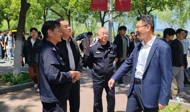 本网讯 4月15日,学校各单位组织开展2025年全民国家安全教育主题普法宣传活动,保卫处联合办公室、宣传部在紫云路校区、金寨路校区分别设置宣传展台、制作宣传展板,属地公安机关国保大队、派出所警官来到师生身边开展普法教育活动。校党委书记马文革现场指导。