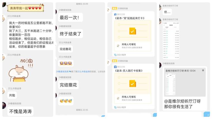 打卡群内,易班工作站工作人员定期推送运动知识、励志语录,增强参与者粘性;同学们也在打卡群中分享跑步心得、照片,互相鼓励,形成了良好的运动氛围。经过一个月的坚持与努力,数百名同学成功完成了打卡任务。