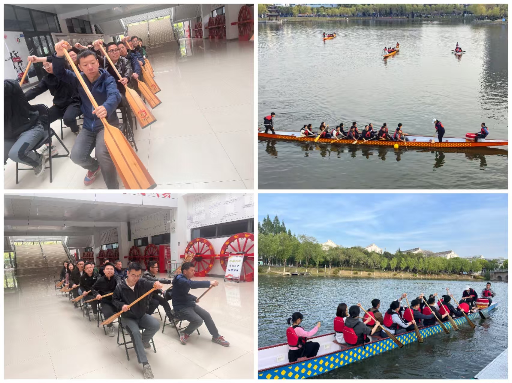 龙舟运动作为中华文化的活态载体,已深度融入我校育人体系。2023年学校首次将徽州龙舟纳入到体育课程,依托易海优质水域资源,建成了标准化龙舟教学码头,配备专业龙舟器材与安全设施,为教学与训练提供硬件保障。同时组建了专业的教学团队,通过开设龙舟课程、举办教职工龙舟文化体验活动,系统传授龙舟历史、礼俗内涵、划桨技巧等知识技能,让师生在划桨击水中感受“同舟共济、奋勇争先”的精神内核,实现“以体育人、以文化人”的双重目标。