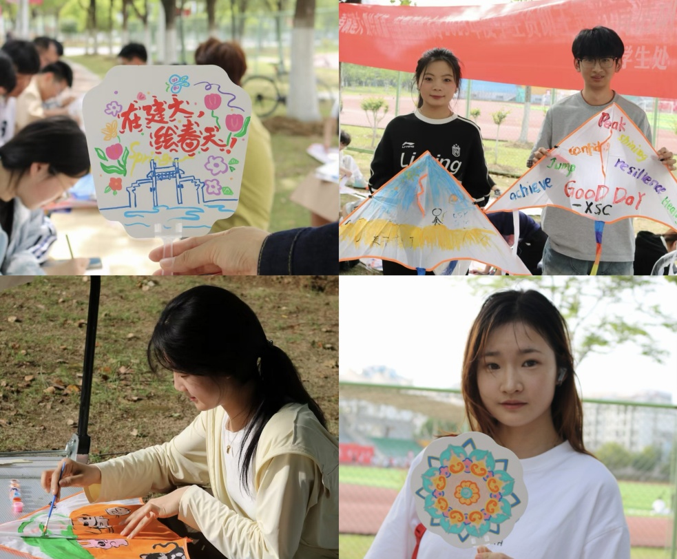 活动现场气氛热烈非凡,同学们怀揣着对未来的憧憬与感恩之心,积极投身于绘制风筝与纸扇活动之中。有的同学专注于风筝创作,他们以细腻的笔触勾勒出翱翔天际的飞鸟、绽放云端的繁花,寓意着在资助政策的有力托举下,自己得以追逐梦想、自由飞翔;有的则钟情于纸扇绘制,或书写激昂向上的诗词警句,展现奋发进取的精神风貌,或描绘校园的标志性建筑与风景,抒发对学校的眷恋与热爱。每一笔每一画,都倾注着同学们对学校关怀的感恩之情,以及对美好生活的无限向往。