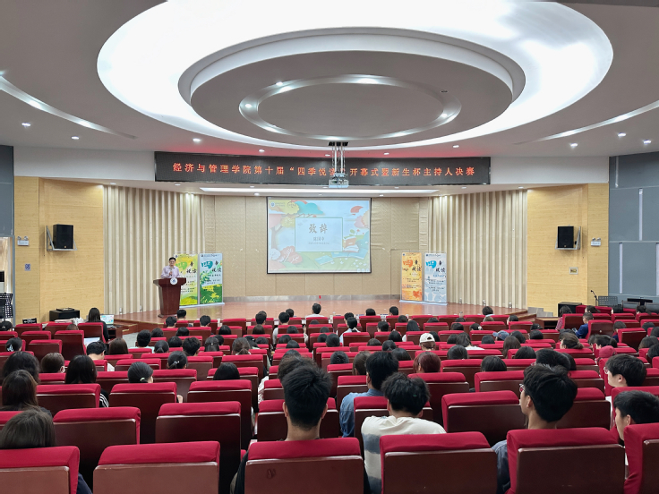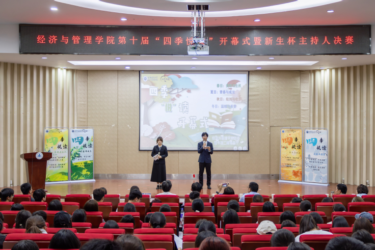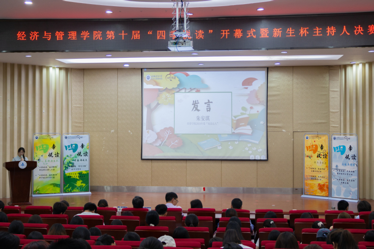 本网讯 4月23日,正值第30个世界读书日。为营造浓厚的书香氛围,在四季更迭中领略阅读的魅力。ku游官方经济与管理学院第十届“四季悦读”书香校园文化节开幕式于ku游官方金寨路校区图书馆二楼报告厅隆重举行。学院领导班子、教师代表和200余名学生现场参与活动。