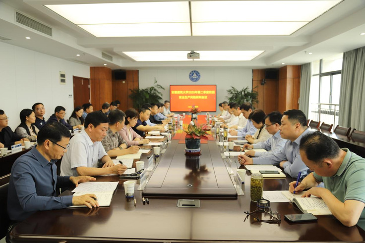 本网讯 为深入学习贯彻习近平总书记关于安全生产重要论述和重要指示批示精神,进一步强化“五一”假期及毕业季期间安全防范,坚决遏制各类事故发生,4月27日下午,学校在紫云路校区徽风楼21楼第二会议室召开2025年第二季度校园安全生产风险研判会议,校领导马文革、黄显怀、蔡国军、李早、杨科、王佐才出席会议,相关职能部门及各学院主要负责同志参加会议。会议由校党委常委、副校长蔡国军主持。