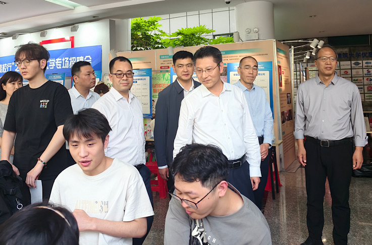 招聘会现场,马文革与用人单位和毕业生亲切交流,对淮南市人社局长期以来对学校就业工作的支持表示感谢。他指出,学校高度重视毕业生就业工作,始终坚持以学生为中心,不断加强与地方政府的合作,拓宽就业渠道,提升就业服务质量。希望以此次招聘会为契机,进一步加强校企合作,实现人才培养与企业需求的无缝对接,为毕业生创造更多的就业机会。