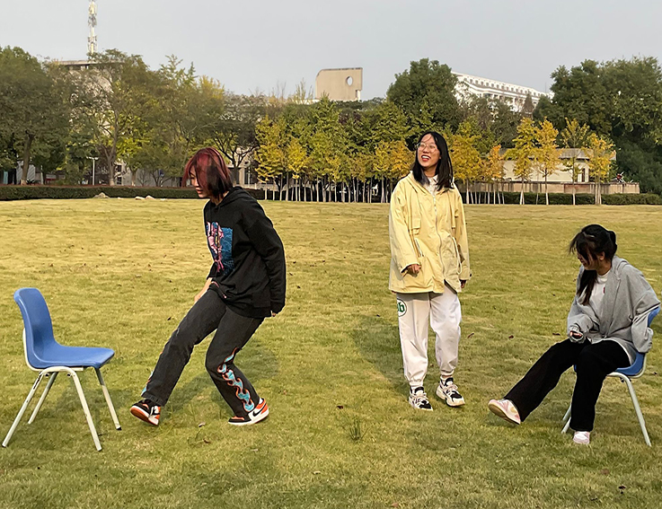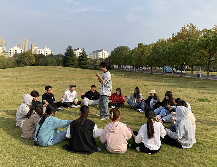 在“大风吹”和“松鼠搬家”破冰游戏环节中,同学们欢声笑语,打成一片,挥洒青春的活力,拉近了与伙伴们之间的距离,活跃了现场的氛围。在“抓乌鸦”活动环节,参与活动的同学们席地而坐,拍手欢歌,将欢乐的氛围推向了高峰,大家肩并着肩,背靠着背,心连着心,携手前行,将那八九点钟的阳光洒满了心田。