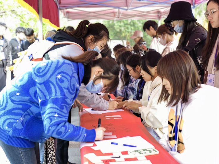 “心怀希望,向阳生长”心理嘉年华开幕式活动在北区食堂广场如期拉开帷幕。心理嘉年华宣誓墙上,同学们纷纷在签名墙上写下名字,写下自己对大学生活的美好期待。大家利用这个机会互相交流近期的学习生活,让同学们宣泄心中不良情绪,融洽同学之间关系,释放心中压力,放飞美好心情。
