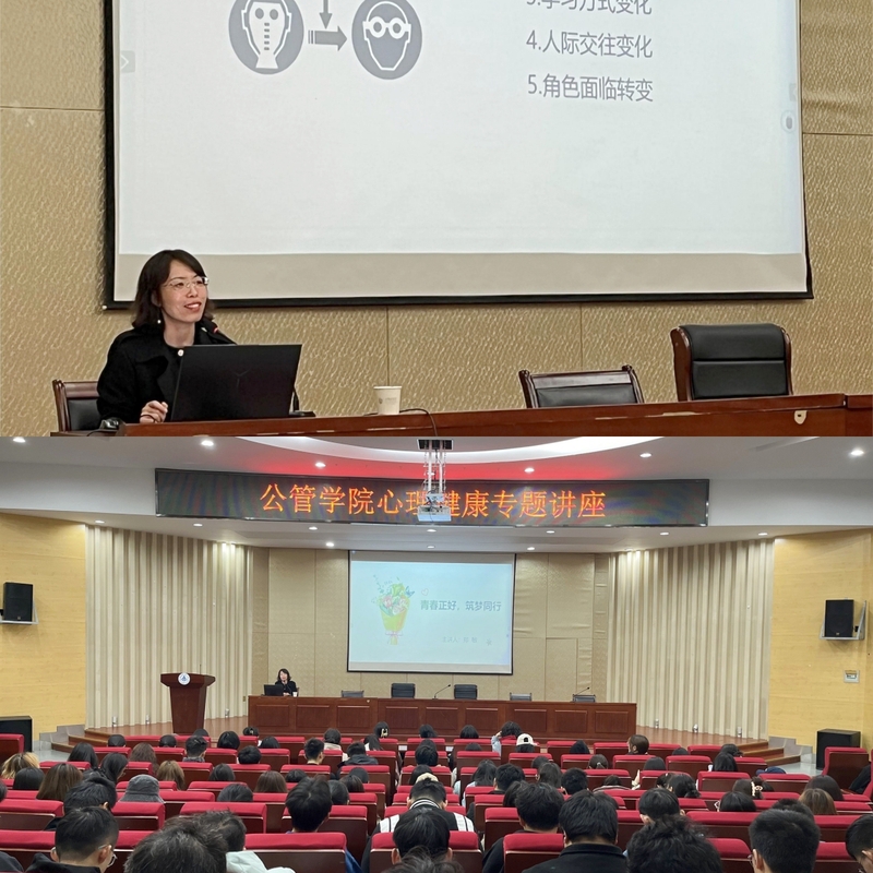 本网讯 为进一步加强学院心理健康教育工作,提高学生心理健康意识,促进学生身心全面发展,11月中旬,公管学院举办系列心理健康教育专题讲座,分别邀请王健老师和郑敏老师作专题报告,报告由学院党委副书记江侠主持,学院新生辅导员、2023级全体学生聆听了报告。