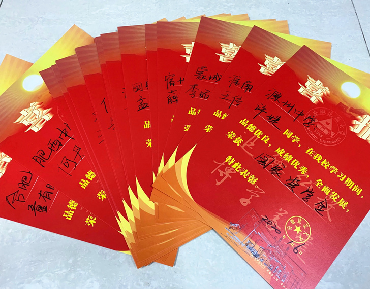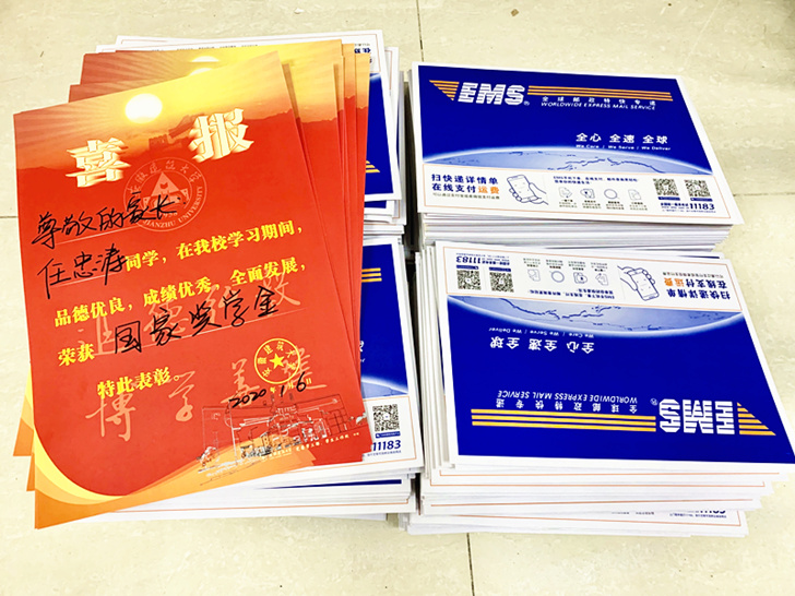 本次喜报寄发范围涵盖2019年度国家奖学金、部分国家励志奖学金获得者;2019年校长奖学金等33项社会奖学金获得者的家庭及高中母校。1000余份喜报已于近日寄出。
