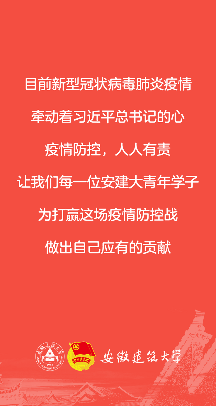 本网讯 当前,抗击新型冠状病毒感染的疫情正处于防控关键时期。为保障师生健康,切实做好新型冠状病毒感染的肺炎防控工作,建大学子从自我做起,发起线上接力承诺,为坚决遏制疫情扩散、夺取防控斗争胜利奉献青春力量。