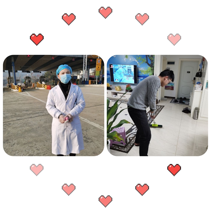 为了让妈妈安心工作,放假在家的我担起了家务工作,每天擦地收拾屋子,把房间收拾好让妈妈回家就可以吃饭休息,尽可能的不让她因为家里的事而烦心。作为家人的我们说不担心是假的,但身为医护人员的家属我们能做的只有支持她的工作,正是因为有她们的负重前行才换来我们的平静生活。愿所有的医护工作者都可以早日回家。