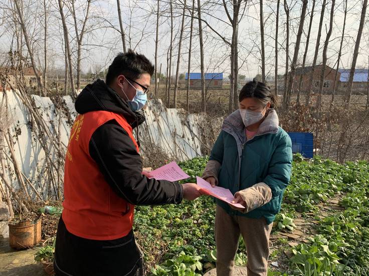 在安徽省淮南市寿县小甸镇的街道上,我们大学生志愿者像各家各户发放防疫宣传单,提醒他们佩戴口罩,帮助卡点的工作人员做好车辆登记工作。我们坚持用实际行动来陪祖国一起度过难关。