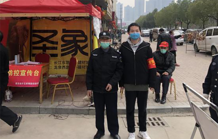 2019级研究生杜涛的父亲是一名老共产党员,大年初一就投入到地方的疫情防控工作之中,在父亲的言传身教下,他也志愿参与了社区疫情防控工作。他的工作是协助社区工作人员对进出居民进行登记与体温测量,并劝阻外来人员进入小区。热心的他,经常向居民宣传疫情防控知识,出门戴口罩、勤洗手、勤洗脸,保护好自己。他坚信,一座城、一个国家,因为有爱,所以温暖,因为温暖,所以有力量,因为有力量,所以相信一定能战胜疫情!(图/文:杜涛;指导老师:何鹤立 孙晓庄;审稿:万德军)