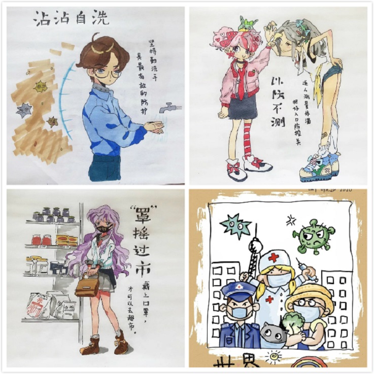 为展示广大青年团员积极参与疫情防控和决胜脱贫攻坚的青春形象,学校举办红色信息征集活动。艺术学院18级环境设计专业房星佳、邓微制作了漫画版《抗疫科普宣传片》;环能学院19级环境工程专业李明钰、电信学院18级物联网工程专业赵颖慧创作了抗疫宣传画;材化学院16级应用化学专业裴璐瑶编写了红色短信《牢记使命》;电信学院18级计算机科学与技术专业狄宗哲拍摄记录了自己在社区志愿服务期间的所见所闻,志愿者们同社区工作人员一起,凝心聚力、扛责在肩、以身作则、勇挑重担,展现了青年团员主动担起历史使命和政治责任,在疫情防控第一线拼搏奉献的青春风采等。