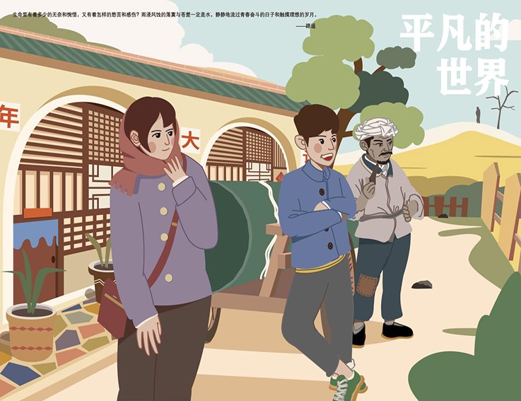 18级视觉传达设计专业陈鹏宇以电脑绘图的手法创作作品《平凡世界》。该书用写实的文字讴歌了普通劳动人民,颂扬了中华民族千百年来自强不息、厚德载物的优良传统。绘画作品展现了书中孙少平、田润叶、孙玉厚三代人和谐相处的场景,表达出众多普通人在大时代历史进程中对幸福和理想最美好、最朴实的追求。