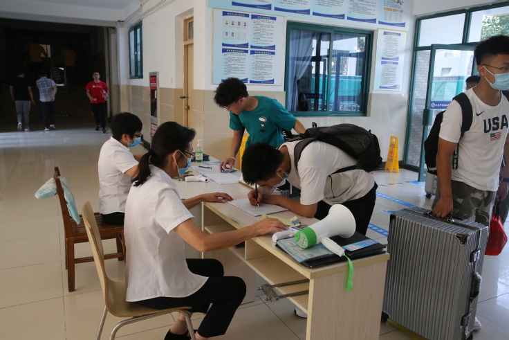 严密组织,有序返校。返校报到现场,从校门口到食堂、公寓区,工作人员提前部署,热情欢迎学子们归来。在工作人员的指引下,同学们佩戴口罩,保持间距,严格按照返校报到流程顺利完成报到手续。在学校各部门协同联动、有序组织下,报到环节环环相扣、无缝对接,报到现场秩序井然,校园里又充满了生机和活力。
