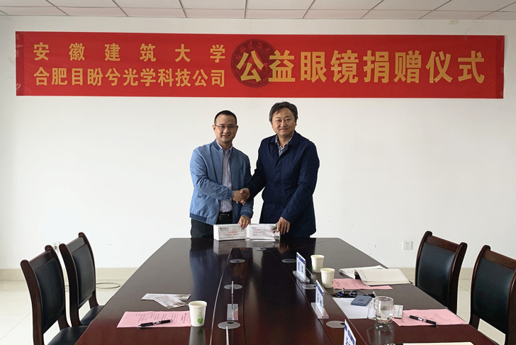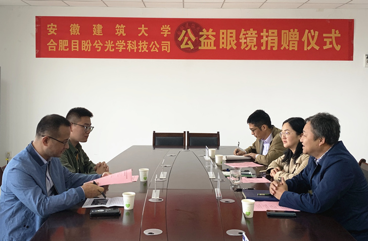 本网讯 奉献爱心、点亮视界,10月21日下午,ku游官方和合肥目盼兮光学科技有限公司在南校区实验综合楼16楼第一会议室共同举行公益眼镜捐赠仪式。合肥目盼兮光学科技有限公司总经理王勇、配镜师潘志虎,学生处处长斯方龙、副处长汤娜及相关工作人员出席了捐赠仪式。
