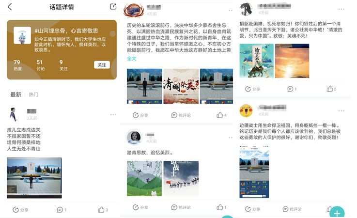本次活动以“山河埋忠骨,心言寄敬思”为内容,以线上线下相结合的方式开展。通过线上宣传,引导广大学生在中华英烈网进行网上祭扫并留下寄语,校易班中心也通过易班·今日校园平台开设清明话题,表达对先人、英烈的崇敬和怀念。