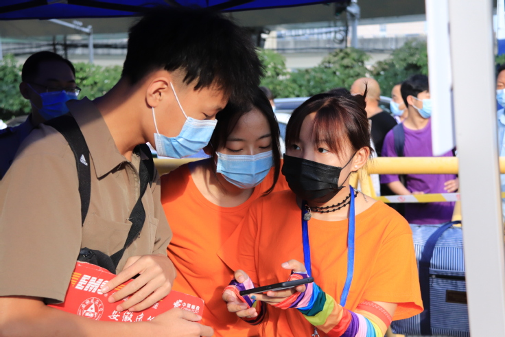 新生报到当天,学校在迎新总服务台设立“绿色通道”,提供快速引导、国家助学贷款咨询等一站式服务;在校门口设立家长等候区,安排志愿者为家长提供咨询服务。各学院设立迎新志愿服务点,为新生提供路线引导和行李搬运,志愿者们用温暖的笑容、贴心的服务充分展现了理工担当。新生们在师生志愿服务人员的帮助引导下完成体温检测、健康码扫描、身份核验、报到手续等流程,顺利走进期待已久的大学校园。