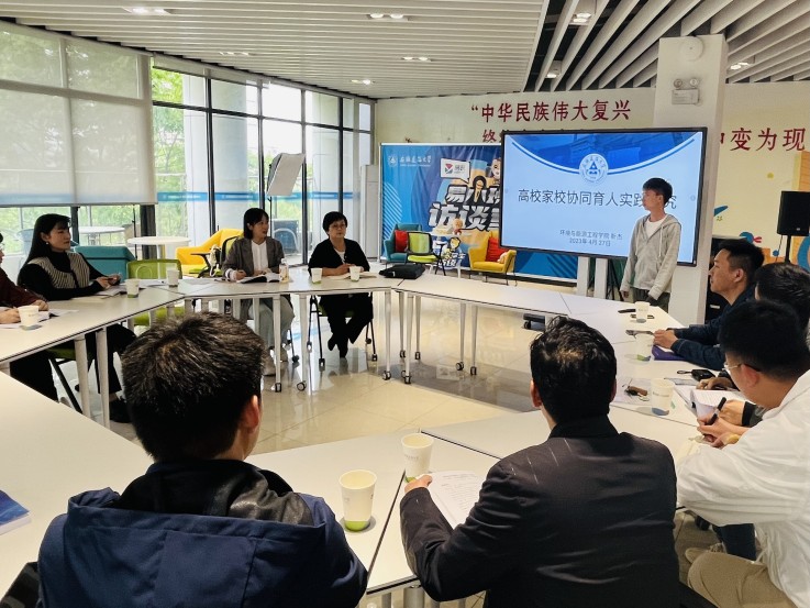 本次沙龙分享人是环境与能源工程学院的专职辅导员靳杰,他的分享题目是《高校家校协同育人实践探究》。靳杰老师分享了自己作为2022级建筑环境与能源应用工程专业学生辅导员,是如何将家校协同育人理念落实落细落地的。他主动搭建家校协同育人工作平台,撰写“建环周记”,从“建环大事记”“本周闪耀星”“同学有话说”“导员有话说”和“建环树洞啊”五个维度向家长分享学生每周在校学习、生活的具体情况,家长也可以通过家校协同平台进行提问,与辅导员开展互动交流,不仅提高了自己的工作效率,还形成了家校双向互动、同频共振、教育互补的局面。