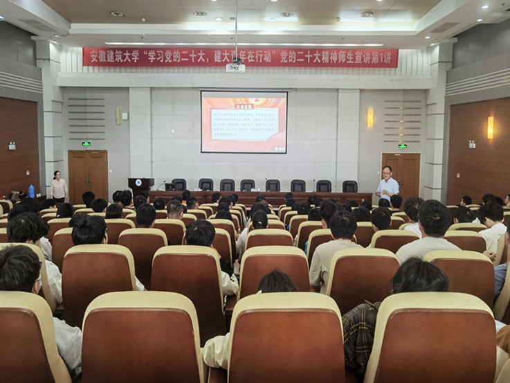 编者按:凝心聚力擘画新蓝图,团结奋进谱写新篇章。为深入学习宣传贯彻党的二十大精神,引导全校师生把思想和行动统一到党的二十大精神上,将力量凝聚到党的二十大确定的各项任务中,校党委学工部成立“学习党的二十大,建大青年在行动”党的二十大精神师生宣讲团,走进各学院,面向全校师生开展对象化、分众化、互动化宣讲,推动党的二十大精神入脑入心、走深走实、见行见效,激励建大人以昂扬的精神状态、务实的工作作风,续写学校建设发展华章!