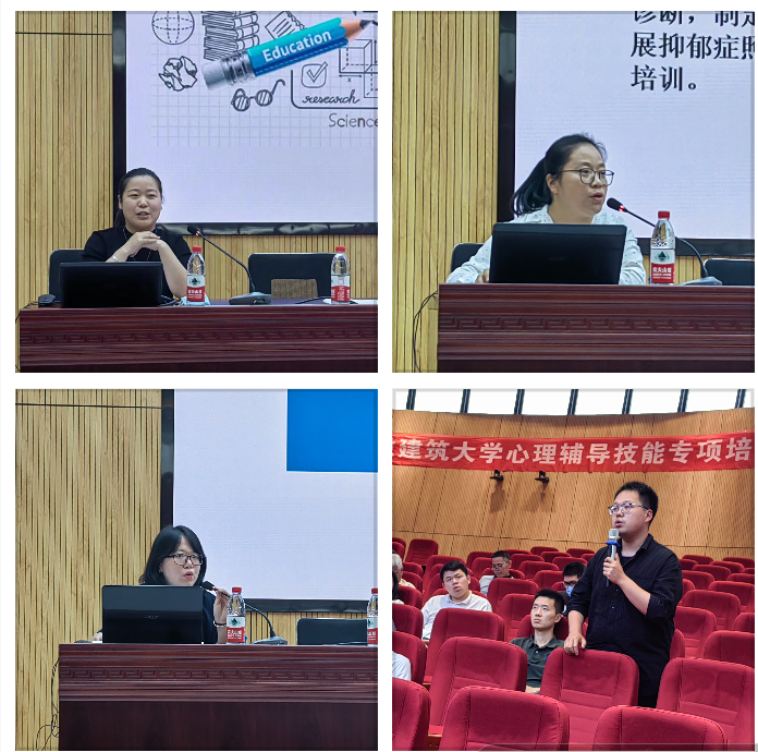 在辅导员沙龙活动中,建规学院心理辅导站副站长李芬从抑郁症成因与防治知识,丰富与会老师理论知识,机电学院心理辅导站副站长江双分享了其他高校抑郁症学校干预工作经验,对学校心理健康工作有很强的指导和借鉴意义,经管学院辅导员金三人分享了抑郁症学生的工作案例,为辅导员工作提供参考思路。合肥市精神卫生防治中心副主任徐小童从精神科医生专业视角对三位老师的汇报进行了点评,从心理工作伦理、药物治疗、病情诊断、校医联动等方面提出了宝贵建议,辅导员们积极提问互动,气氛热烈。