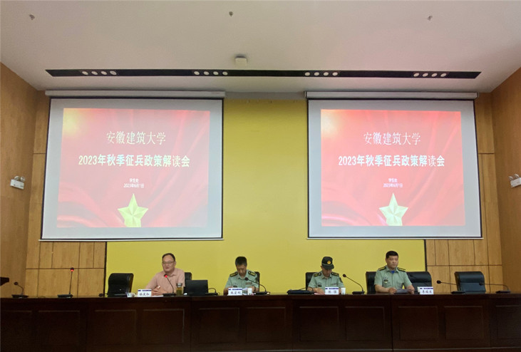 本网讯为深入贯彻落实习近平强军思想,鼓励毕业生积极响应党和国家号召,6月1日下午,学校征兵工作站联合安徽省包河区人武部联合召开2023年度秋季征兵宣讲会在南区综合实验楼二楼报告厅举办。包河区人武部部长朱宏刚,包河区人武部军事科长陈强,包河区常青街道武装部副部长李瑞东,学工部部长徐庆和出席会议,各学院分管学生工作书记、全体毕业班辅导员、学生处相关人员和2023届有入伍意向的毕业生参加会议。会议由学工部部长主持。