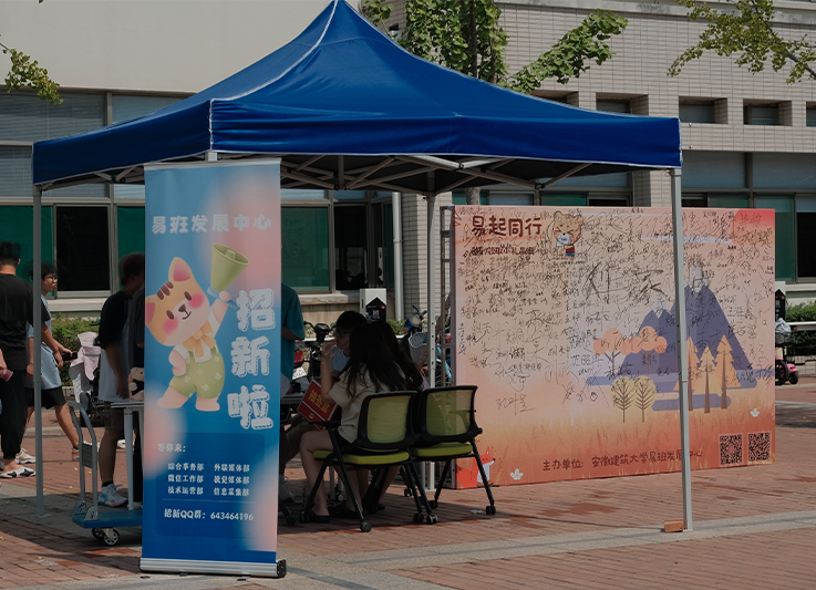 9月15日-9月22日校易班发展中心在南校区北食堂门前开展招新宣传工作,给广大新生提供一个锻炼自我、展示自我、提升自我的平台,践行新时代青年的责任使命,同时,进一步充实学校易班学生骨干队伍。此次招新宣传工作形式丰富、内容多样。不仅有精心设计的易班宣传展板、海报、易拉宝,还设置了新生互动环节,通过签名、抽奖的方式送出丰厚的礼品,让正在军训的新生感受到了易班大家庭的温暖。