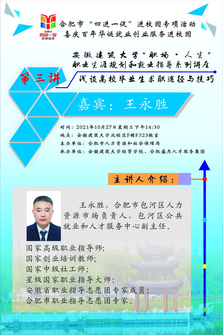 关于举办第三期“职场.人生”职业生涯规划和就业指导讲座的通知