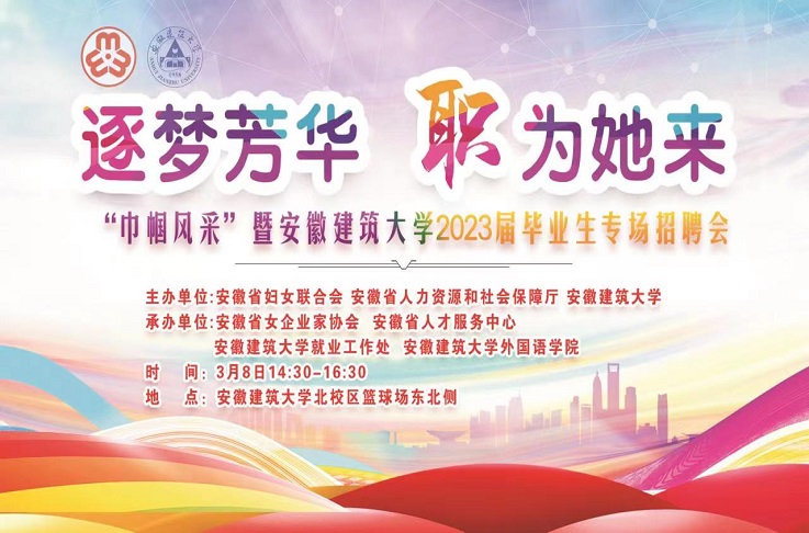 春之已至,万物以嘉。为进一步贯彻落实党的二十大精神,拓展大学生就业渠道,助力大学生实现更高质量的就业。学校与安徽省妇女联合会、安徽省人力资源和社会保障厅联合举办“逐梦芳华 职为她来——‘巾帼风采’暨ku游官方2023届毕业生专场招聘会”,具体通知如下: