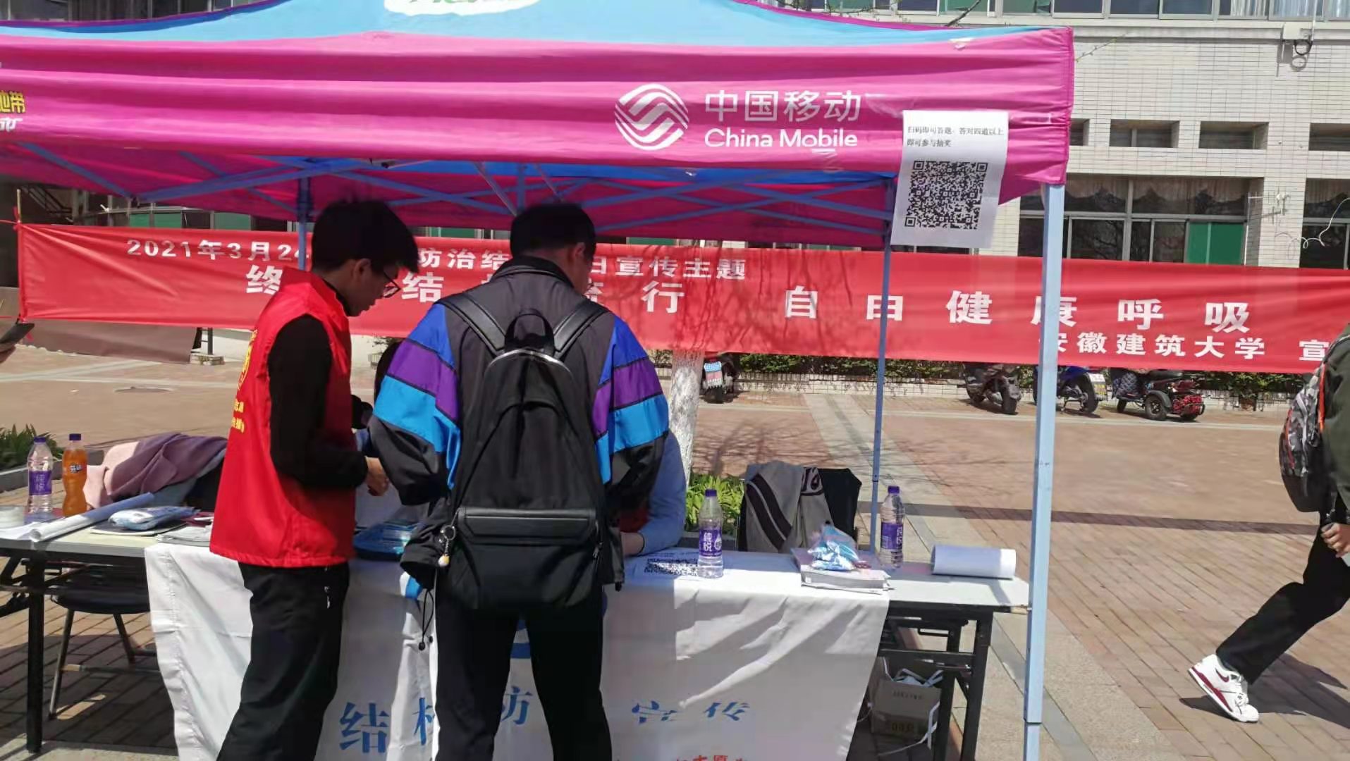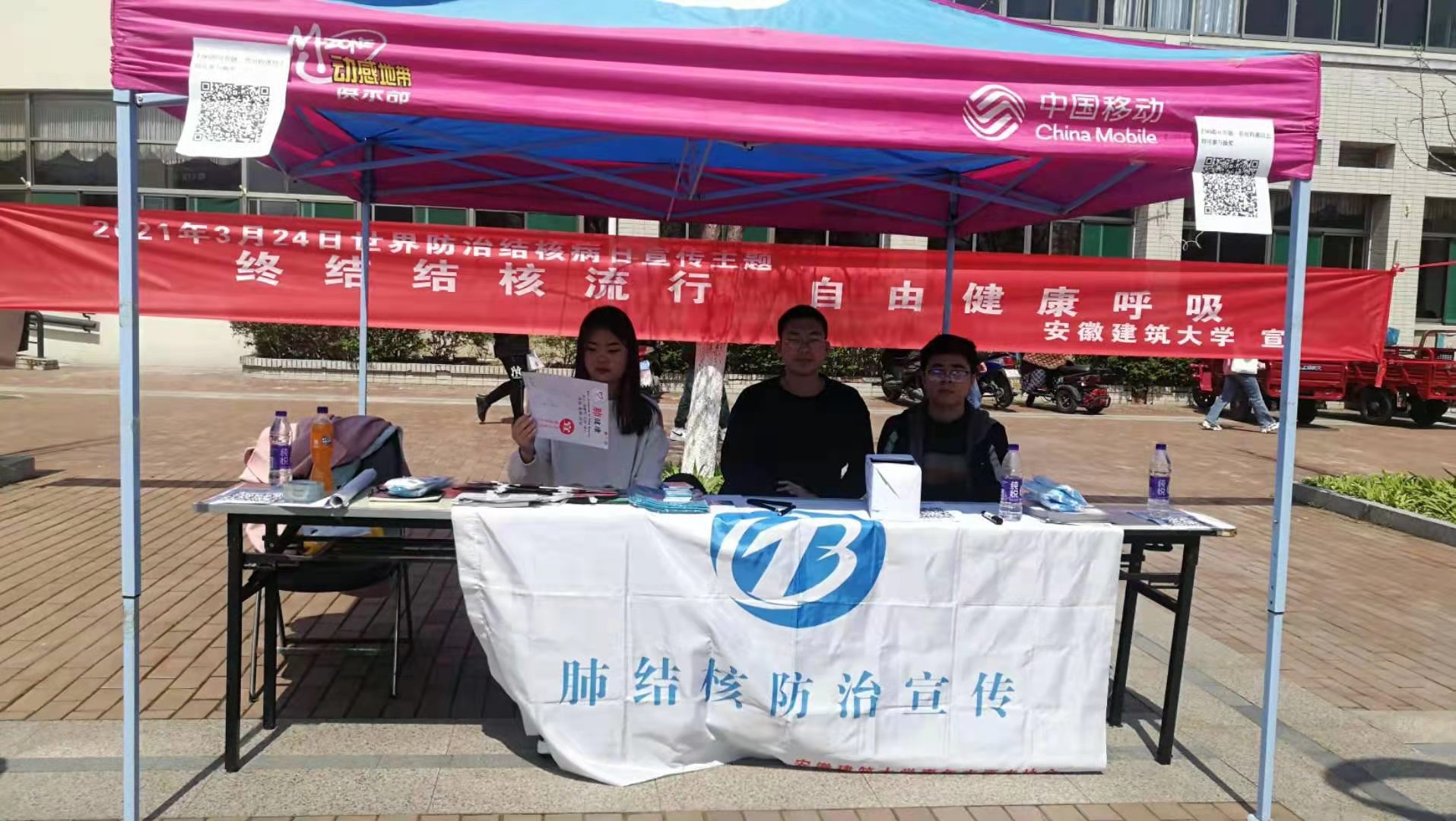 2021年3月24日是第26个“世界防治结核病日”,校医院携手安建大青年志愿者协会开展了“终结结核流行,自由健康呼吸”为主题的系列宣传活动。在学校南北区醒目位置悬挂宣传活动主题条幅及发放宣传画册。