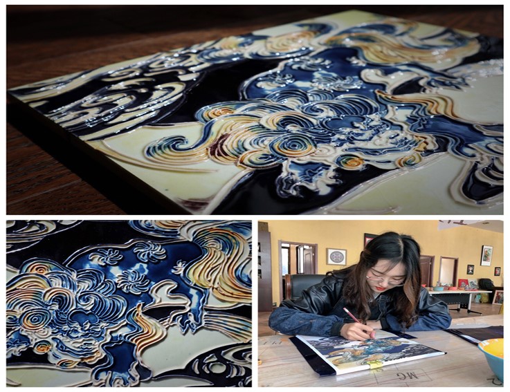 18级环境设计专业张艺馨采用国家非物质文化遗产——唐三彩技艺瓷白底雕塑彩绘创作作品《神兽驱疫国安泰》。该作品以神话传说中可以驱病逐鬼、祈祝祥和平安、造福世人的神兽入手,来表达对祖国战胜疫情的坚定信念和对所有英勇奋战在一线的人民英雄们的感谢,愿“神兽”可以“长驱毒疫民安泰,佑我中华浩气存”,中国加油,我们能赢!