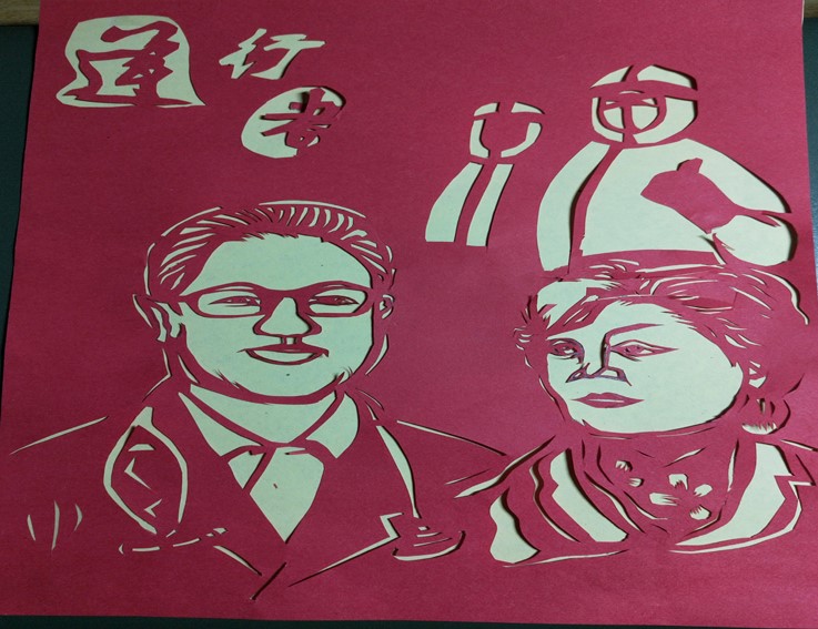 18级环境设计专业沈越的剪纸作品 《逆行者》刻画了抗疫英雄钟南山和李兰娟院士,希望医护人员可以早日完成抗疫战争,平安归来!